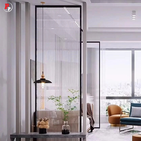 Le motif Rayé donne un effet structuré et contemporain, idéal pour séparer les espaces tout en laissant passer la lumière.